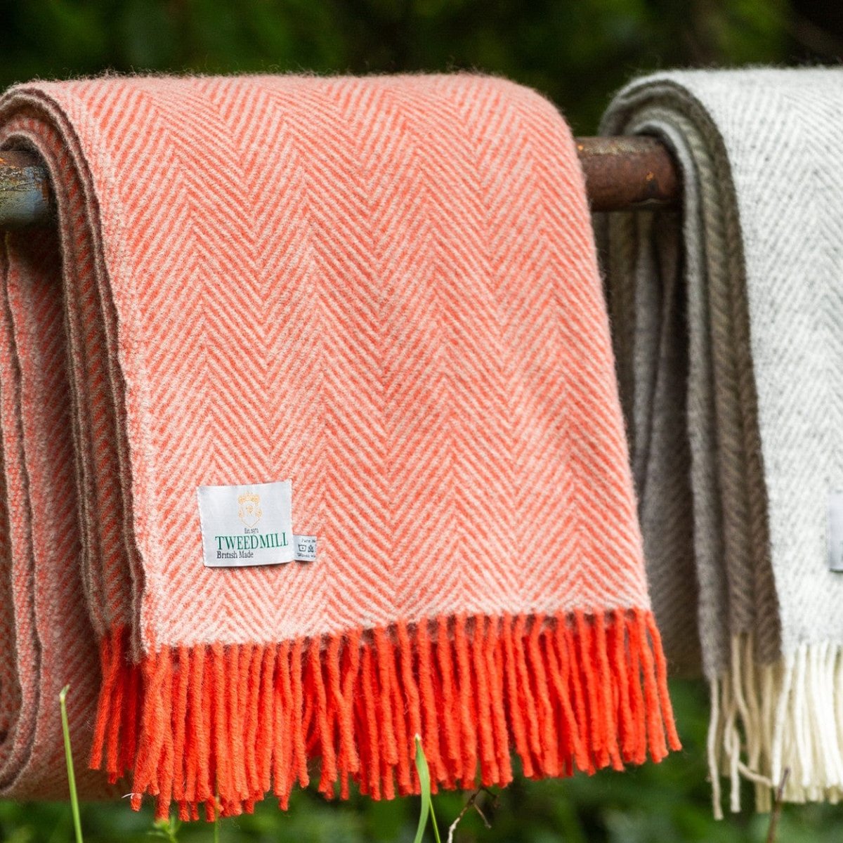 Embrace the warmth of a Scottish winter with the beautiful Herringbone Plaid Pink and Pearl (Flamingo and Pearl). This unique plaid is not just an accessory, but an invitation to enjoy the coziness that Scottish craftsmanship brings.