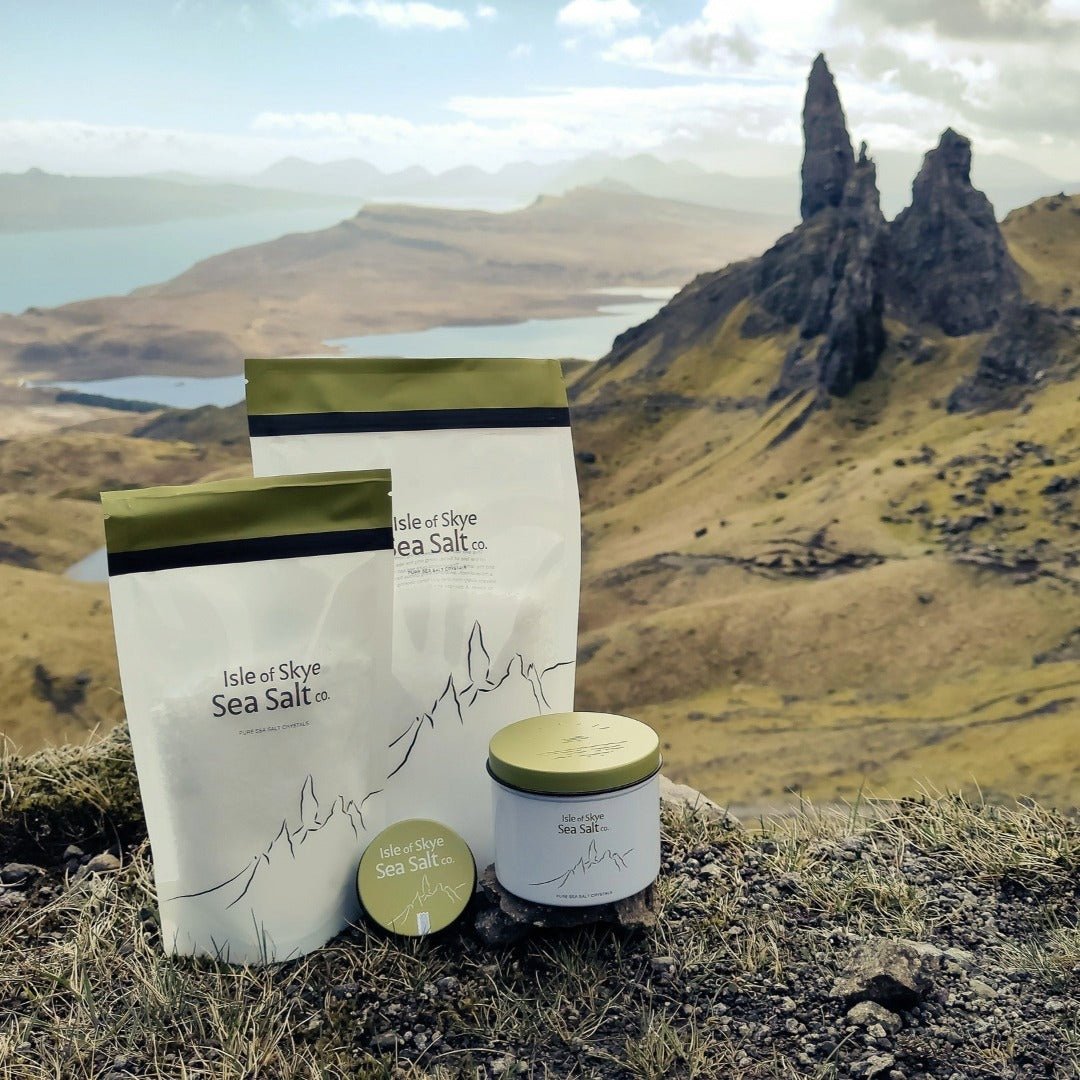 Artisanal process: Seawater is sourced from Loch Snizort and naturally evaporated in polytunnels—without heat, chemicals, or hassle.