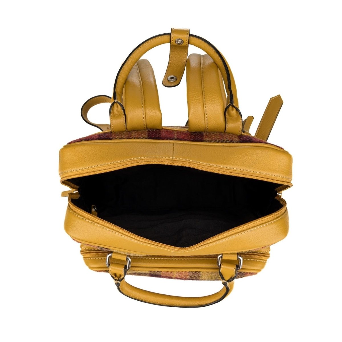 Großer Rucksack Gelb-Rot Tartan & Leder | Das Impex