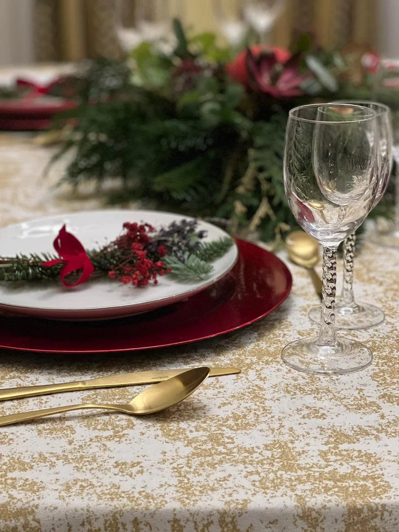 Verwenden Sie es für besondere Anlässe oder als Teil Ihrer täglichen Rituale. Das Tischdecken verwandelt jede Mahlzeit in ein Fest, sei es ein einfaches Abendessen unter der Woche oder ein ausgedehntes Dinner mit Freunden. Die goldenen Akzente verleihen einen Hauch von Raffinesse, wodurch es auch ein perfektes Geschenk für eine Einweihung oder einen Hochzeitstag ist.
